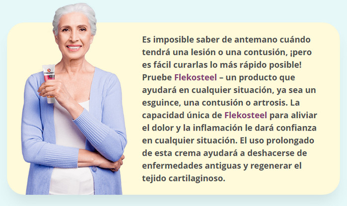 Flekosteel – Este es el medicamento más efectivo que hay en el mercado. Pero no puedes comprarlo en la farmacia.¿ donde la venden Flekosteel? Puedes comprar Flekosteel solo en el sitio web oficial. Puede hacer comprar el siguiente enlace, que lo enviará al sitio web oficial Flekosteel. El precio de Flekosteel es bastante bajo, dada la oferta especial en el sitio. Al realizar un pedido, recibirá un descuento del 50%. Compre ahora y obtenga el producto original ¡con descuento!